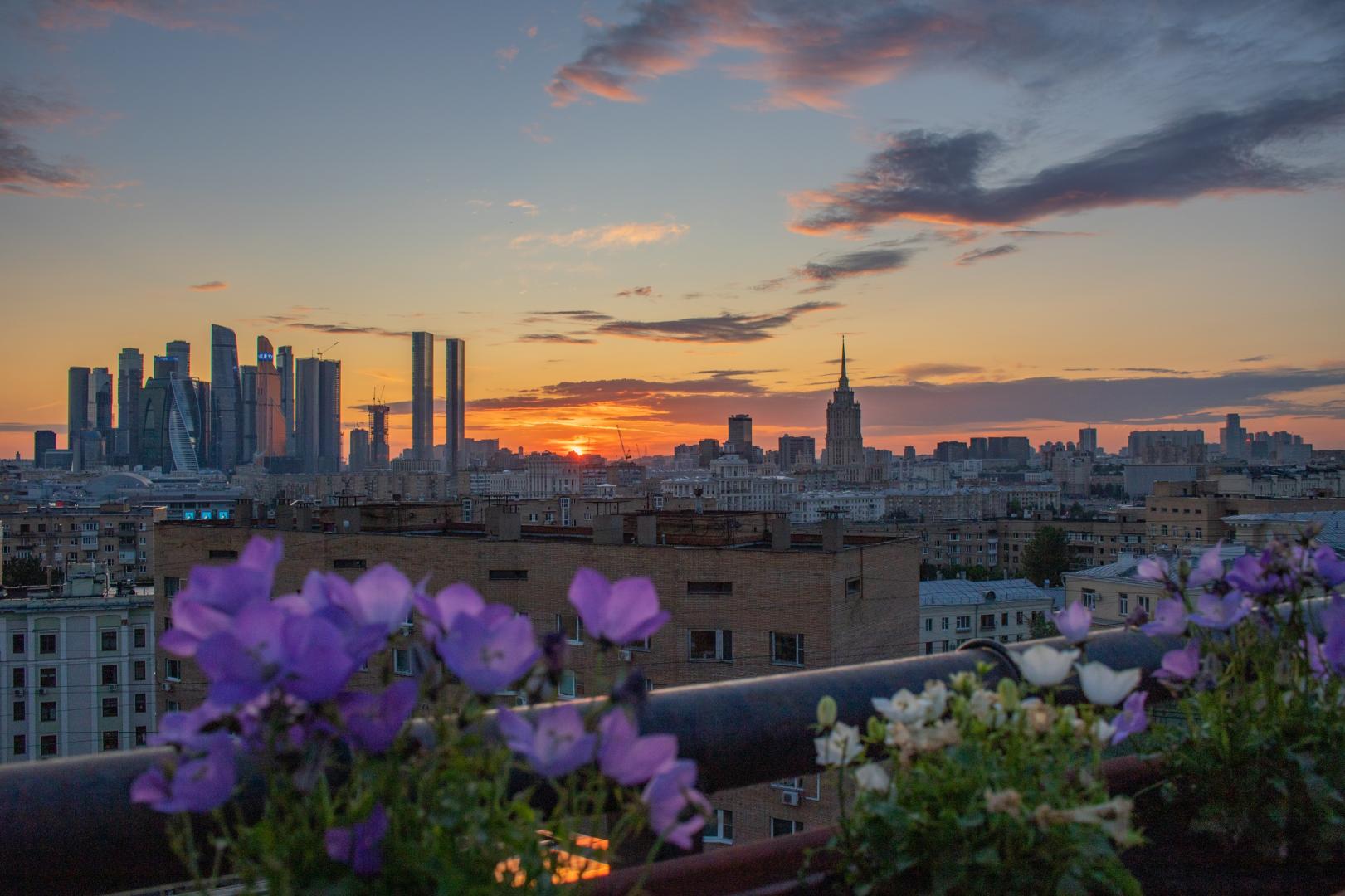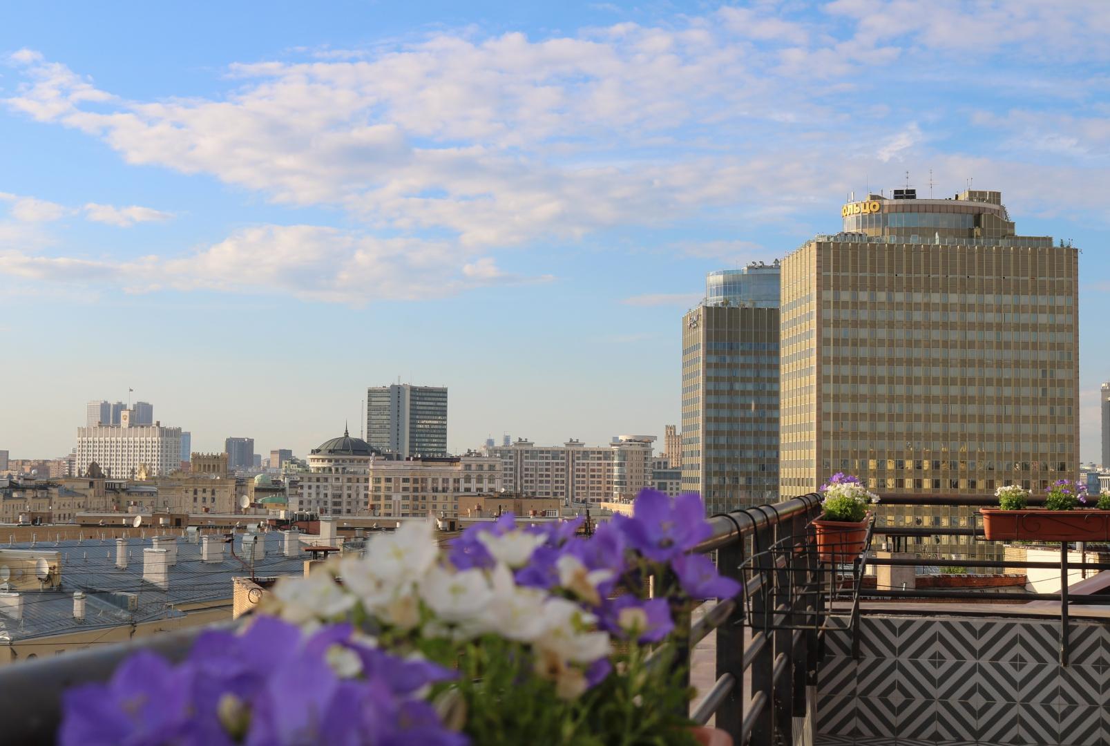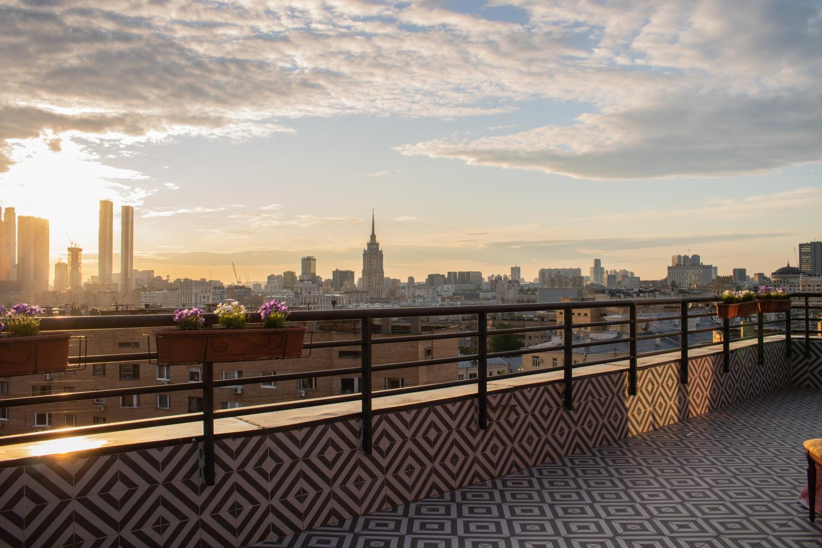 В пентхаусе предусмотрены 2 террасы на втором уровне: большая - 51.9 кв.м. и малая 7.5 кв.м. С большой приватной террасы открываются потрясающие виды на деловой центр Москва-Сити, высотное здание МИДа, гостиницу Украина.
